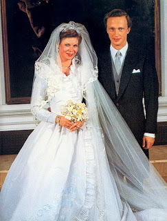 On February 14, 1981, Henri (then the Hereditary Grand Duke of Luxembourg) married Cuban-born MarĂa Teresa Mestre y Batista- Falla after meeting her while both were studying at the University of Geneva. Naturally, we must mark this occasion by flashing back to the best part of any wedding (well, as far as this blog's concerned, at least): the dress.